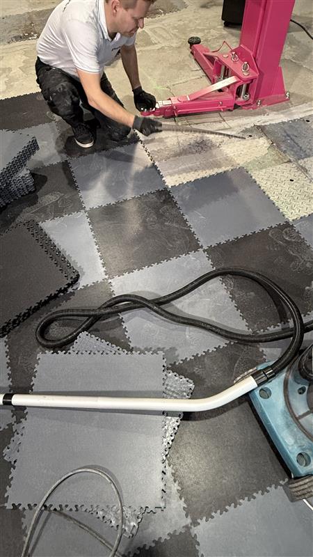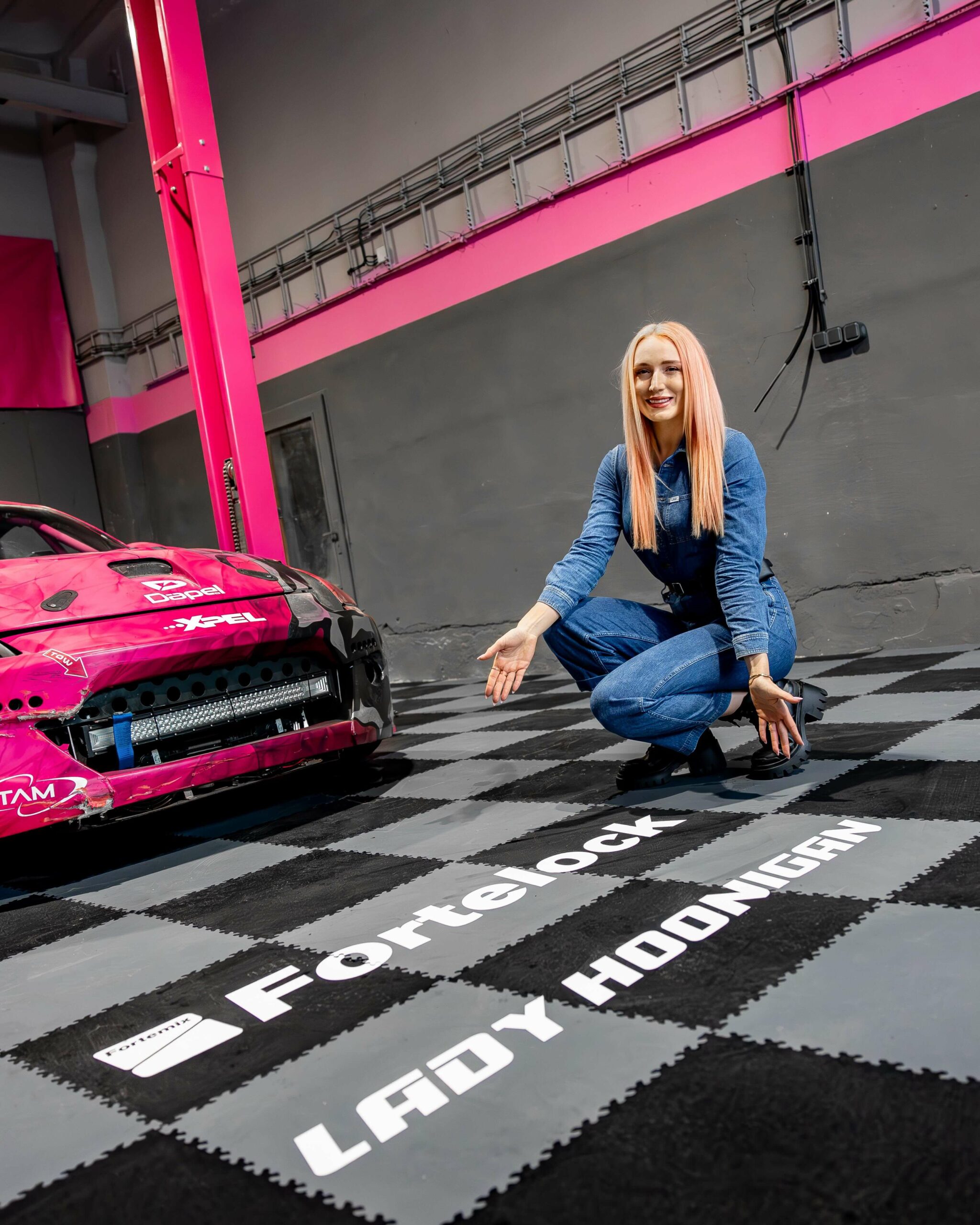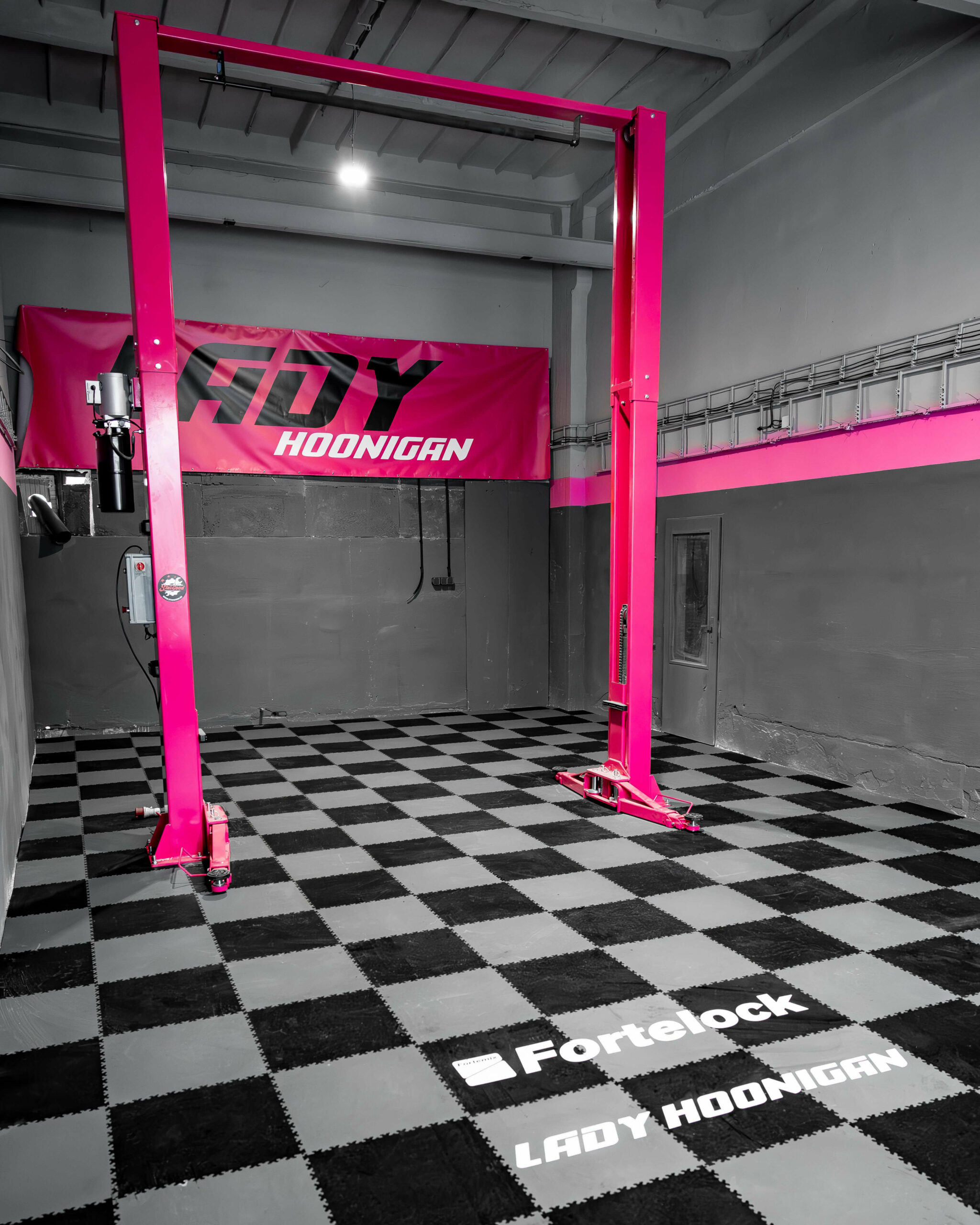 Lady Hoonigan má novou dílnu! Co říkáte na tu proměnu? 70 m² prostoru, kde se maká naplno a podlaha tomu odpovídá. Použili jsme Fortelock Industry, navíc s potiskem loga, takže podlaha v šachovnicovém vzoru dostala i výrazný designový prvek.