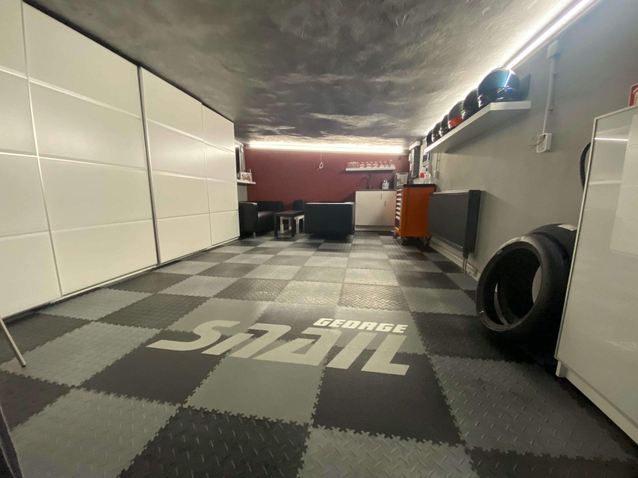Tomu říkáme povedená garáž! Milovník motorek si s interiérem opravdu vyhrál a výsledek stojí za to. Díky naší podlaze získala garáž moderní, ale zároveň útulný vzhled. Velký výběr barev, dezénů a možnost dlaždice na míru potisknout, umožnily sladit podlahu s ostatními prvky do nejmenších detailů. Podlaha dobře vypadá, je odolná, a především se snadno udržuje. V případě lokálního poškození je velkou výhodou možnost výměny dlaždice za novou.